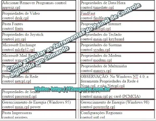 Este artigo descreve como executar ferramentas do Painel de Controle no Windows digitando um comando em um prompt de comando ou na caixa Abrir. Observe que o seu computador não pode ter todas as ferramentas listadas neste artigo, pois a sua instalação ou versão do Windows talvez não inclua todos esses componentesFerramenta do Painel de Controle Comando